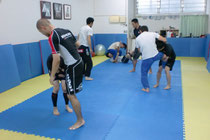 ニー・オンザ・ベリー(相手のお腹に自分の膝をのせます)→