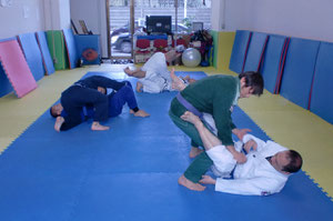 柔術初心者クラスは、ポジションの移動、腕十字等を復習しました。